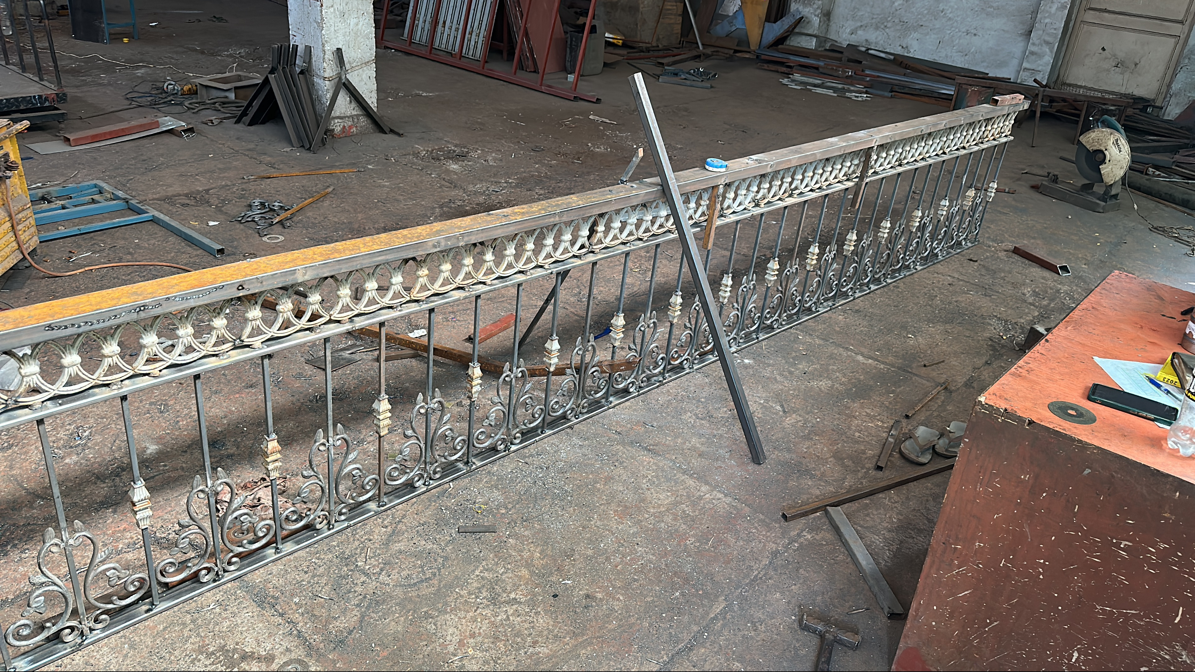 Elevate your home’s exterior with this masterfully crafted balcony railing by Vishwakarma Industries. Combining the strength of premium iron with the delicacy of neoclassical casting, this design features intricate floral scrolls and ornate gold-tipped accents. Each section is precision-welded to ensure maximum durability without compromising on artistic elegance. A perfect blend of security and luxury for grand residences.