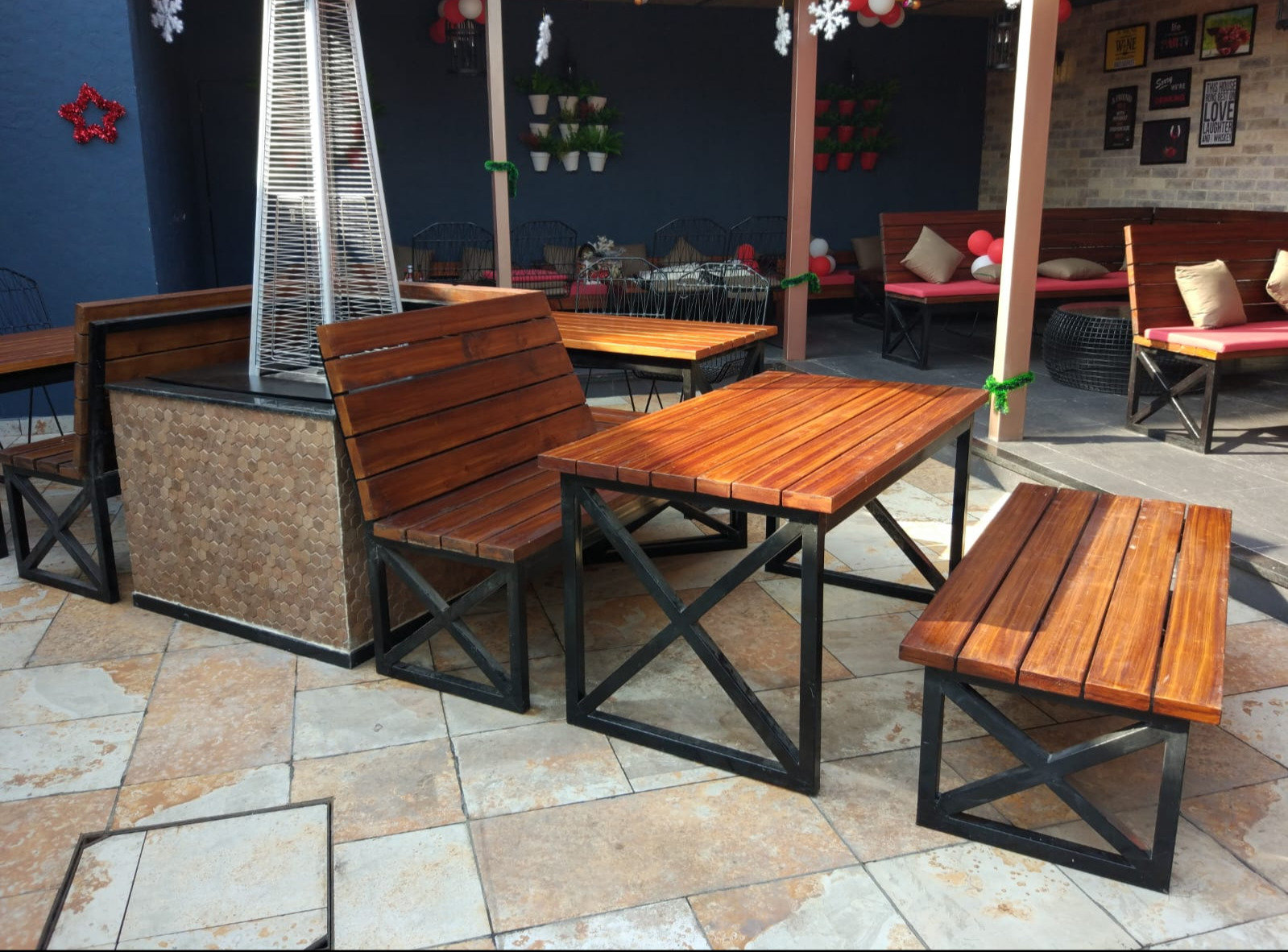 This project by Vishwakarma Industries features premium custom-made steel and wooden furniture designed exclusively for a resto-bar. The setup includes durable MS steel-frame tables, benches and backrest seating finished with high-quality polished wooden slats, offering the perfect blend of strength, comfort and modern industrial style.